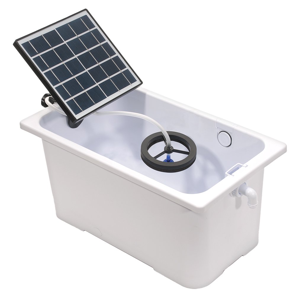 屋外で使用できる電源のいらないソーラー式パワーポンプとろ過バクテリアを増やして水を浄化するスポンジフィルターのセットです。